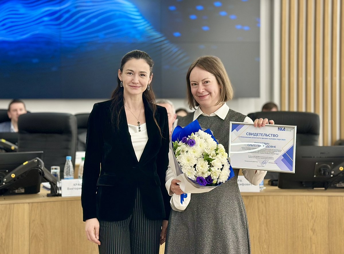Финальным завершением собрания стало оглашение итогов ежегодного конкурса ”Человек года“, победителем в котором стала Ольга Вашкевич, начальник отдела регистрации управления информационного взаимодействия и государственной регистрации , обеспечив своей активной работой большой вклад в совершенствование законодательства Республики Беларусь в области государственной регистрации недвижимого имущества, прав на него и сделок с ним.